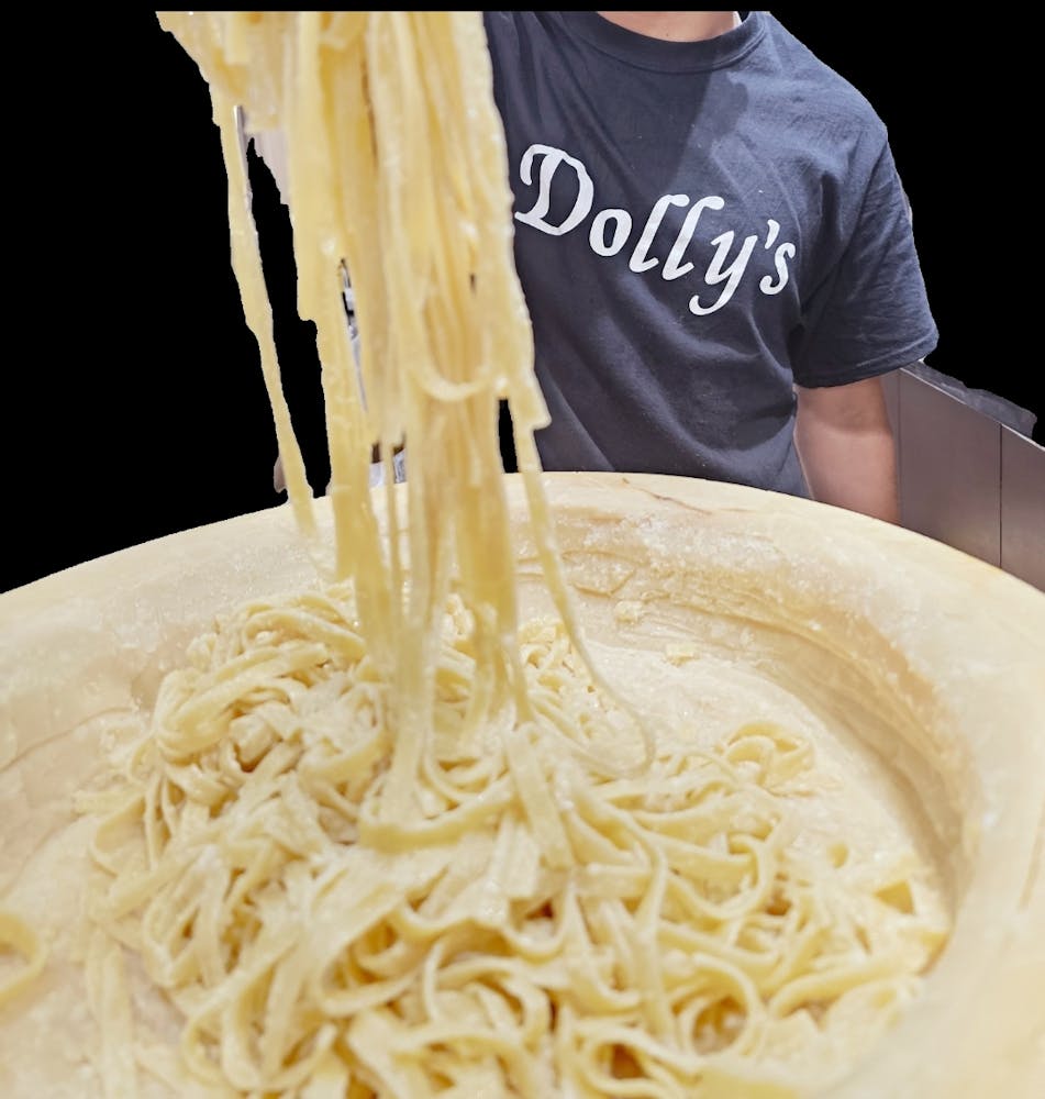 Welcome to Dolly's Cheese Wheel Pasta! Indulge in authentic Italian pasta, tossed in a Parmigiano Reggiano cheese wheel for a flavor-packed experience you won’t find anywhere else.